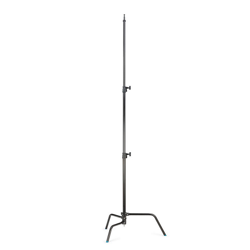 The Avenger A2025FCB in chrome steel black is a 30'' 3 section, 2 riser Fixed Base C-Stand (max height of 253 cm/99.6 in). Avenger C-Stands feature captive locking handles that do not vibrate free, use a black paint process that is more durable than powder coating and perform in the most demanding environments. Avenger C-Stand finishes are second to none and provide long lasting durability.