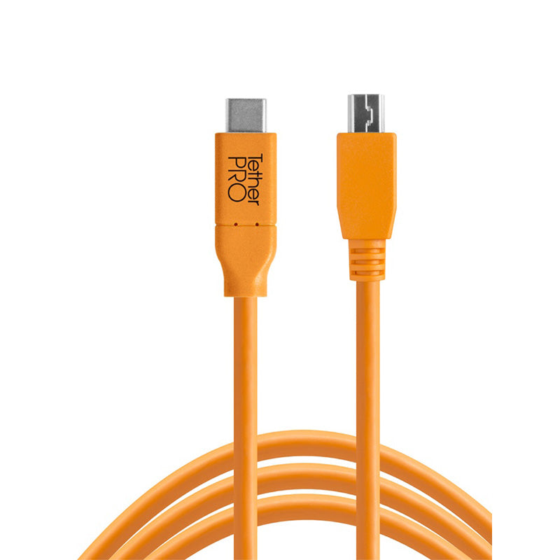 The TetherPro USB-C to Micro-B 5-pin cable delivers USB 3.0 SuperSpeed transfers up to 5 Gbps, making it ideal for photographers using high-resolution cameras like the Sony A7 IV or Fujifilm X-H2. This 15-foot (4.6m) high-visibility orange cable ensures safe, reliable tethering in studio environments, with gold-plated connectors and full shielding to eliminate signal interference.